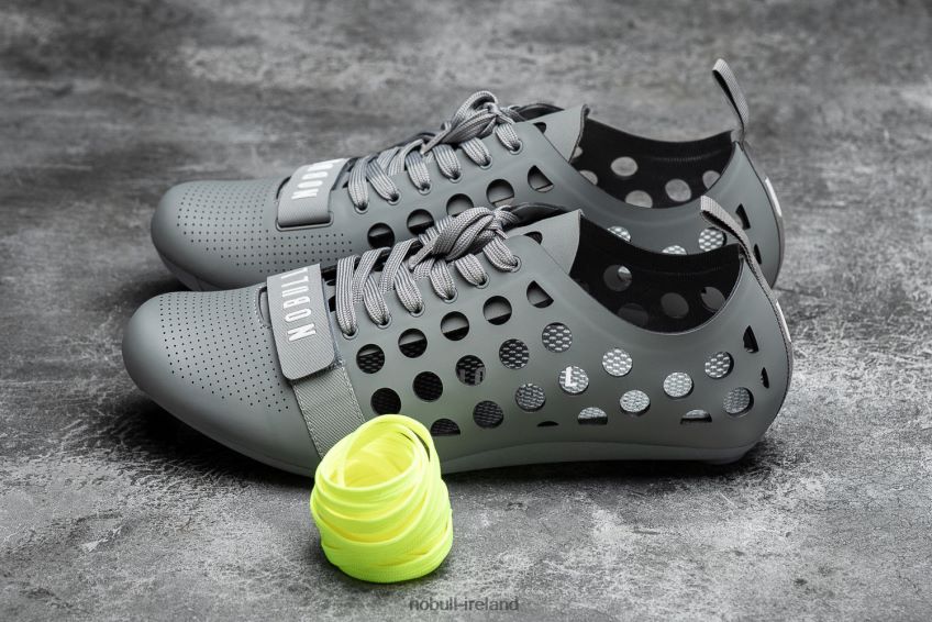 he Cycling Shoe features a deconstructed upper that provides comfort with stability for weight transfers and hill climbs. Everything you need and nothing you don't. A perforated performance upper provideLightweight ventilation that dries quickly and retains less heat. Three-bolt cleat pattern is compatible with indoor and road pedal systems. Cleats not included. Nylon and carbon fiber plate. NOBULL forefoot velcro strap and laces with an elastic lace keeper. The Cycling Shoe comes with two pairs of laces. Molded, anatomical sockliner. True to size. Weight: 8. 4 oz. (Women's Size 8)